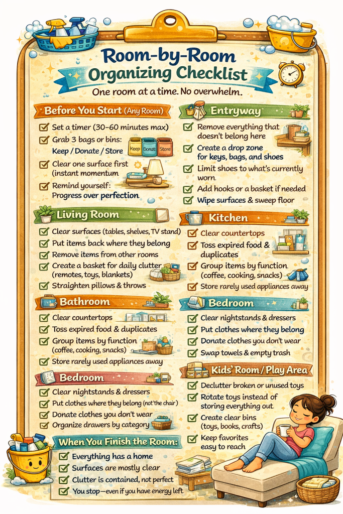 Don’t start with the hardest room. Start with the one that affects your daily routine.
